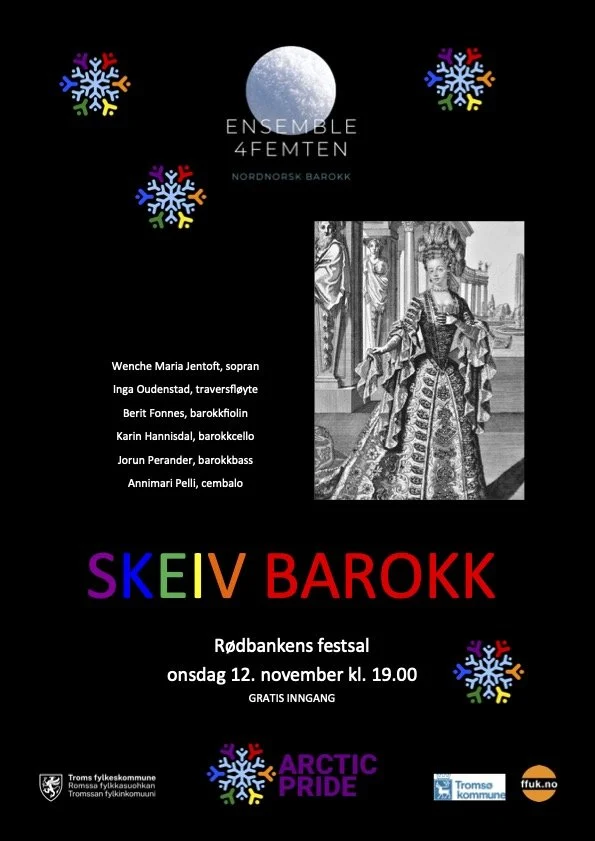 Ensemble 4Femten: Skeiv Barokk onsdag 12. november 2025 19:00 20:00 Rødbanken (Festsalen) 65 Storgata Tromsø, Troms, 9008 Norway (kart) Google Calendar ICS